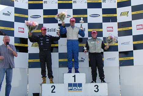 Lars Hein vinder af første heat, her flankeret af Jesper Carlsen (2. pl.) samt Kim Lund Johansen (3. pl.). (Foto: Motorsporten.dk)