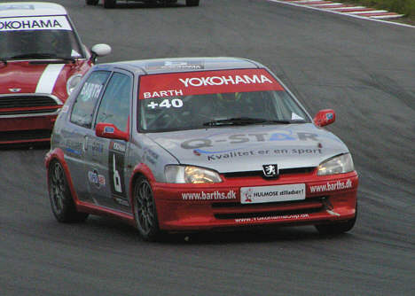 | Ved åbningsløbet på Jyllandsringen forrige weekend fik Dennis Barth sin hidtil bedste placeringer nogensinde i den lille Yokohama Cup klasse. Og det var da også en optimistisk kører der stillede op på Padborg Park i den netop overståede weekend. Men der blev ikke kørt mange omganges træning før det viste sig at det ikke skulle være den bedste weekend for Dennis Barth. Bilen styrede nemlig ikke ret godt. Man prøvede at rette det inden tidtagningen, men der var ikke den store forskel at mærke. Samtidigt blev vel nok alle kørere besværet af at tidtagningen for begge Yokohama Cup klasser skulle finde sted på samme tid. Det betyder et for stort antal biler på banen på samme tid, så det at finde den frie omgang blev en nærmest umulig affære. Efter en tidtagning hvor Dennis Barth trods alle besværligheder fik sig placeret på ottendepladsen, skulle der igen arbejdes med bilen. Men manglen på en mekaniker gjorde at man desværre ikke kunne få bilen til at fungere optimalt. Det viste sig at styregeometrien var kommet helt ud af kurs, så bilen var meget vanskelig at få til at dreje rigtigt. Man forsatte dog ihærdigt selv med at prøve at få det til at fungere så godt som muligt.  Dennis Barth på vej mod sjettepladsen trods besværligheder med bilen (Foto: Motorsporten.dk)