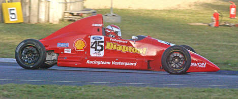 - Internationalt er man i fuld gang med introduktionen af 3. generation (Duratec), fortsætter Nils K. Vestergaard. - Chassis-fabrikkerne udvikler løbende på materiellet, og vi havde således lejlighed til at teste nogle ændringer for Mygale-fabrikken i Frankrig. Til DM-finalen på FDM Jyllands-Ringen fik vi installeret en ny type kølere med henblik på ændring af vægtfordelingen i raceren.