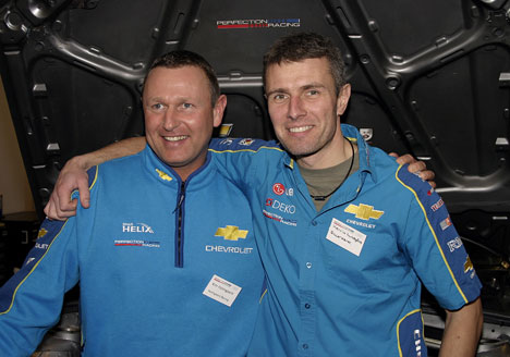 Kim Holmgaard sammen med DTC-køreren, Henrik Lundgaard, der skal medvirke under tests af den nye gruppe N Chevrolet Lacetti. (Foto: Henning Smed / Perfection Racing)
