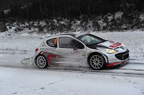 Jean-Sebastian Vigion i Peugeot 207, som startede dagen i top 10, oplevede at sne/is, slet ikke matcher slicksdæk, og faldt langt tilbage.