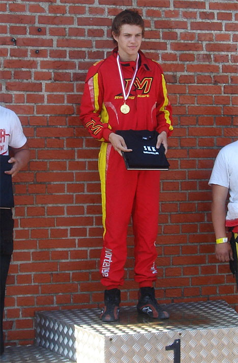 Det er nemlig otte år siden, at han første gang kørte race. Det var i kartingsportens Pop I-klasse, og siden har han kørt i en række forskellige klasser med bl.a. en bronzemedalje i det jysk/fynske mesterskab i KF2-klassen som bedste resultat.