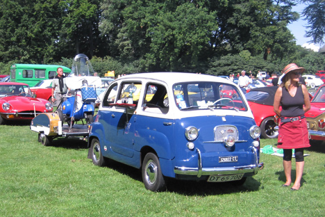 Dorthe Marhauers Fiat 600 D Multipla vandt konkurrencen for køretøjer med det bedste tidstypiske udstyr i 2010. Med kun 767 cm3, 32 hk, 6 personer i kabinen og trailer med Vespa knallert når den nuttede skønhed fra 1965 ikke nogen livstruende topfart. (Foto: CHGP)