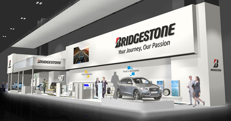 Tre separate zoner på den 284m² stand (Hal 8) viser de besøgende de tre vigtigste elementer i Bridgestone's fremtidige strategi: miljø, innovation og sikkerhed.