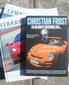 Bogen kan varmt anbefales og prisen på 199.- er rimelig. Hvis den skal bedømes på en V8-skala, så får den helt klart 7 cylindre! At den ikke har den sidste med skyldes at der ikke er nogen billeder i bogen! Med alle de spændende biler Christian Frost har testet, flere af dem omtales i bogen, ville en række flotte fotos have pyntet! Jeg har mange bil- og motorsportsbøger og alle uden undtagelse har masser af billeder. Biler er jo noget af det smukkeste der findes… og Frost har jo mange bilbøger på samvittigheden, alle med masser af flotte billder!