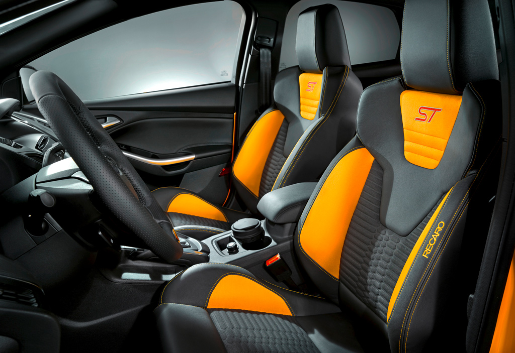 Den nye Ford Focus ST vil blive udbudt i tre forskellige farver og i tre udstyrs-varianter – ST1, ST2 og ST3. Standard-varianten, ST1, har Recaro-sæder med stofbetræk, nøgleløs start-funktion, fodpanel med ST-logo og standard ST-bagsæde med midter-armlæn.