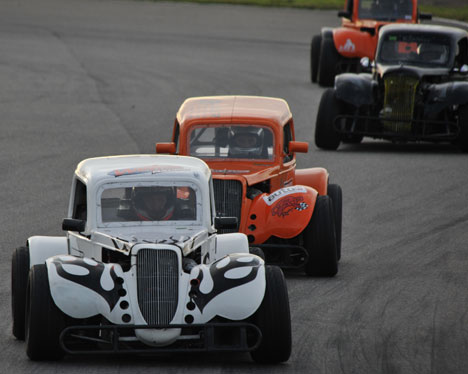 Netop dette løb var et af dagens mest dramatiske. For enden af banens langside kom Freddie Veje, Kirke Hyllinge, for tæt på teamkammeraten Kristian de Fine Olivarius, Køge, med det resultat, at hans bil blev luftbåren og slog adskillige kolbøtter. Heldigvis er de små Legend Cars utroligt hårdføre, så Freddie Veje slap ikke blot uskadt fra luftakrobatikken, men kunne også stille op med bilen i dagens to sidste løb!
