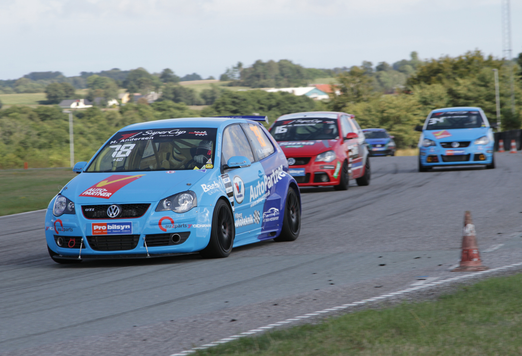 Yokohama SuperCup kørerne fik også kørt et fint race i bakkerne, weekendens første løb blev vundet af den noget brede Polo GTI racer med Martin Andersen bag rattet, han blev fulgt af endnu et par Polo GTI med henholdvis Mikael Kildevæld og Mikkel Bang Johnsen på anden og tredjepladsen |