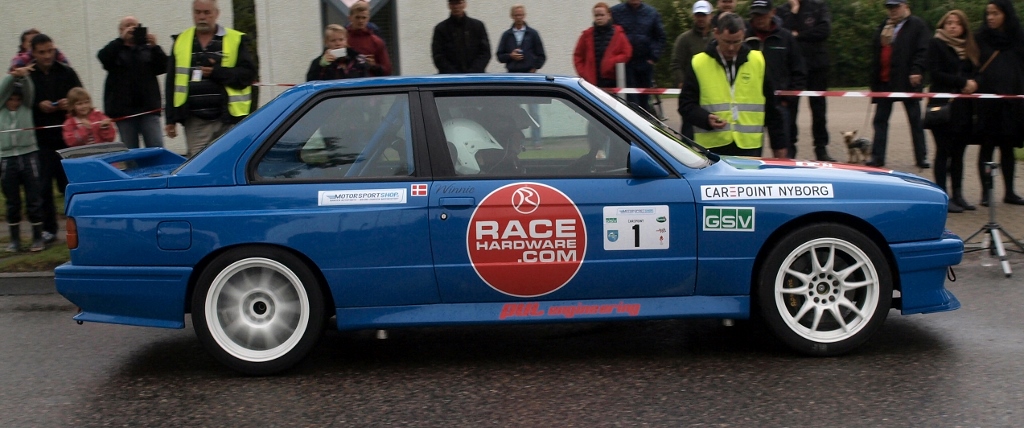 Pedalerne i BMW’en sidder forskudt til venstre i forhold til sædet, så det skal Jørgen også lige vænne sig til, det er ikke sjovt at ’ramme’ den forkerte pedal, dette kostede lige en tur ligeud, men så blev håndbremsen også lige afprøvet på grus, men det hjalp ikke på tiden i heatet.
