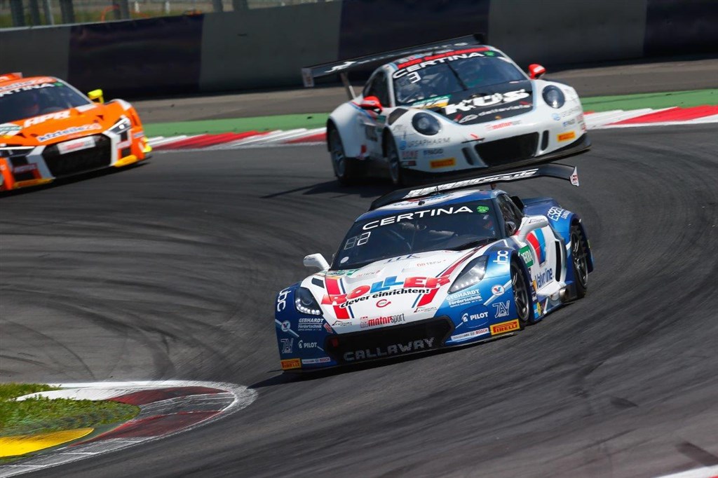 Ny anden placerede er Bentley duo Jordan Pepper og Daniel Abt (Bentley Team ABT). Den oprindeligt fjerde placerede Corvette Z.06 Remo Lips og Sven Barth (RWT Racing) fik en 30-sekunders straf for en overtrædelse under genstarten efter den anden safety car periode og blev rangeret 17. Tredjepladsen er blevet givet til Sebastian Asch og Luca Ludwig (AMG hold Zakspeed) i Mercedes-AMG GT.