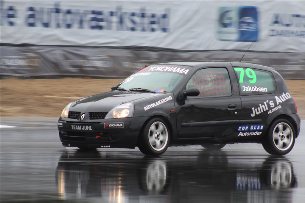 Lidt længere tilbage i feltet viste Brian Jakobsen endnu engang sine talenter i regnvejr. Fra 14. startposition kørte den ellers så vandte Toyota mand sig hele vejen op til 8. pladsen i en Renault Clio som han havde lånt til weekenden. Så måske er det tid til et mærkeskift for manden der faktisk går på et værksted om bl.a. reparerer det franske bilmærke til dagligt…?