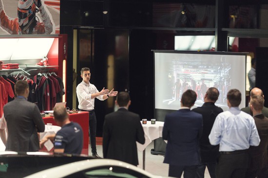 Der blev både sparket dæk, drømt om italienske sportsvogne og ikke mindst fortalt om motorsport før, nu og i fremtiden, da Mikkel Mac torsdag aften afholdt partner event hos Formula Automobile i Allerød.