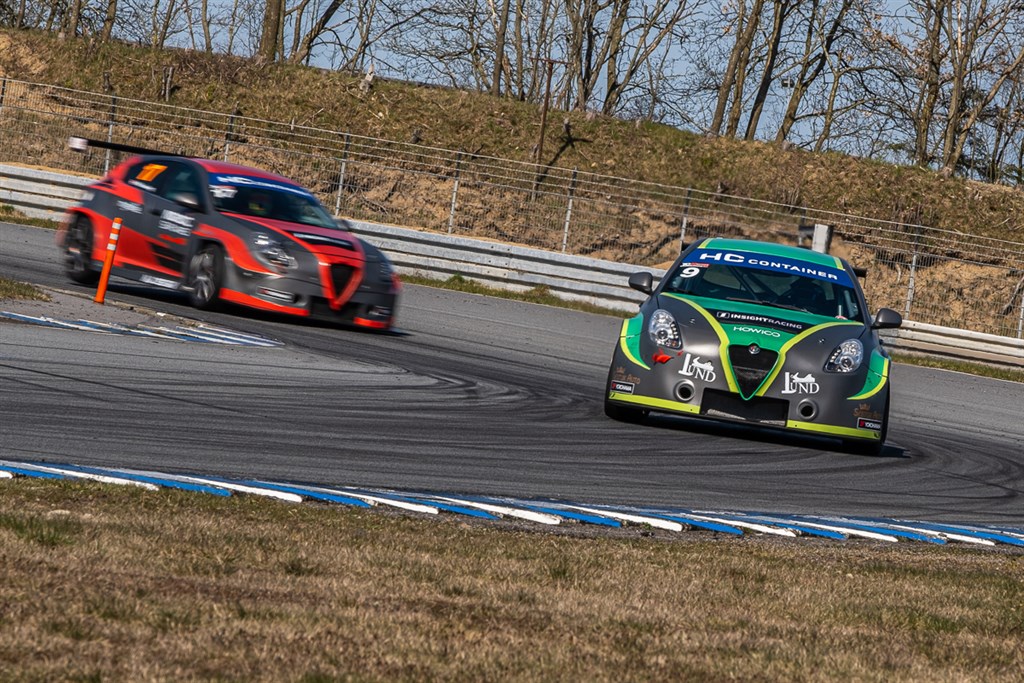 Insight Racing og Alfa Romeo stiller i år med tre biler, hvor de to var til start ved testen. Jacob Mathiassen, her forrest, toppede for Alfa Romeo. (Foto: Kim Gripping/TCR Denmark)