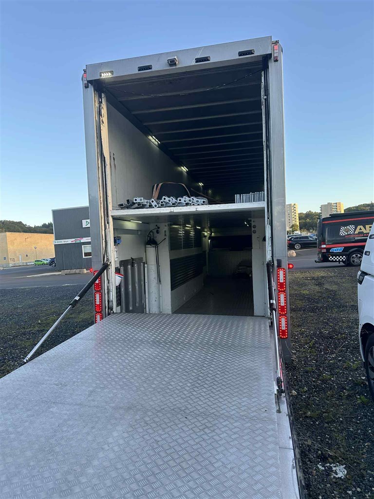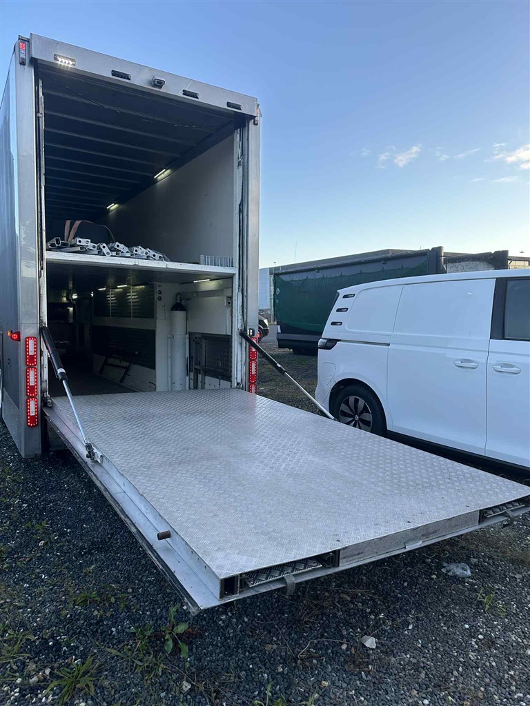 Wilson dobbeltdækker racetrailer med MAN TG 18.440 trækker – begge nysynet maj/juni 2025.