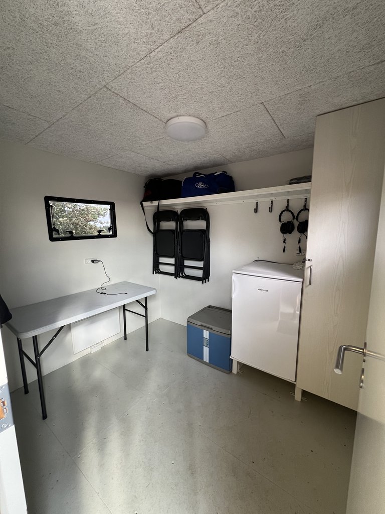 • Livingrummet er isoleret og med troldtek loft, der er køleskab, højskab og el-radiator. Der er monteret oplukkelige vinduer i begge sider.