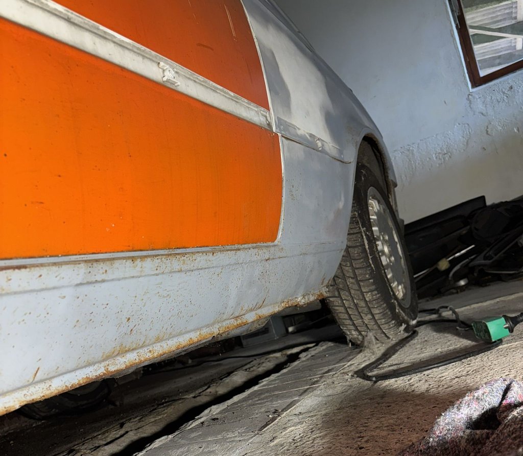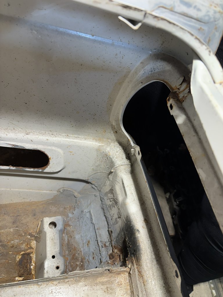 Karrosseri i god stand med minimal rust, så god basis at bygge videre på.