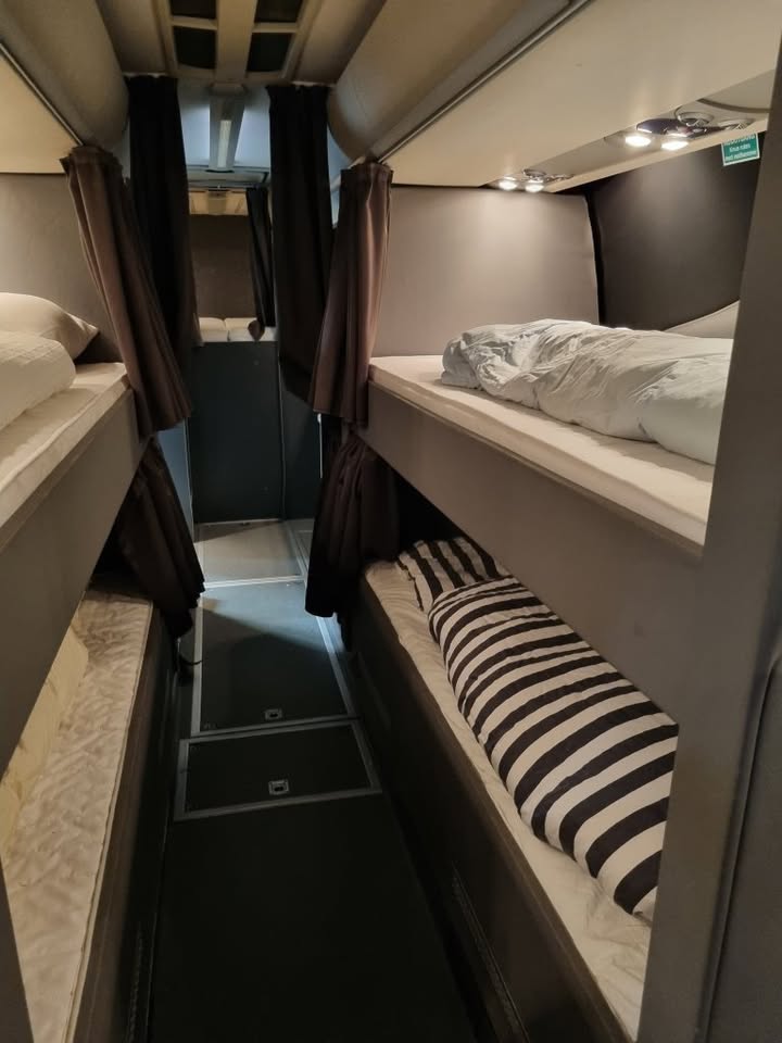 Chaufføren af denne bus er IKKE underlagt Køre- Hviletidsbestemmelserne, og man kan således hurtigt komme fra A til B.