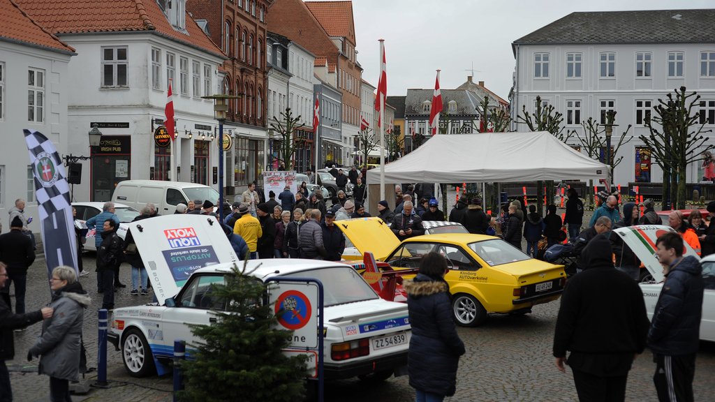 Ved tidligere PRE-start events i Assens, har torvet været fyldt med historiske biler og 100-vil af interesserede besøgende (Foto: rallypics.dk / Viggo Johansen)