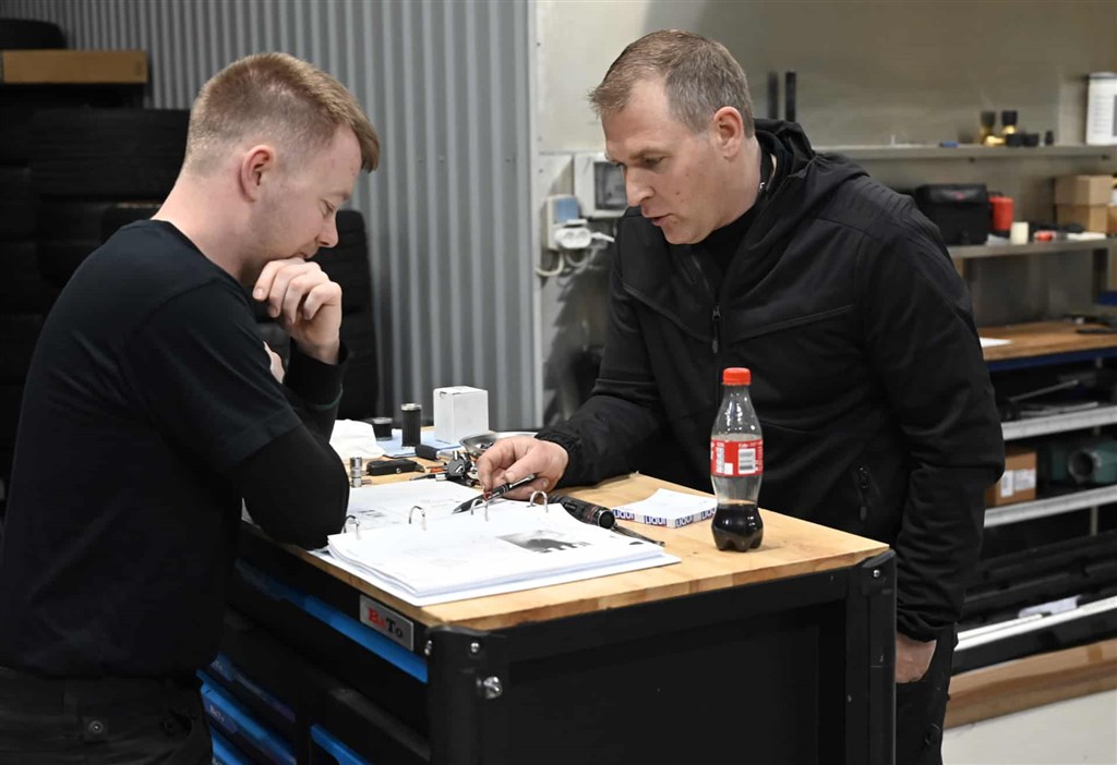 Chefmekaniker Brian Wede (t.r.) har været fast makker ved Ole Petersens side i mere end 10 år. (Foto: Uwe Iwersen)