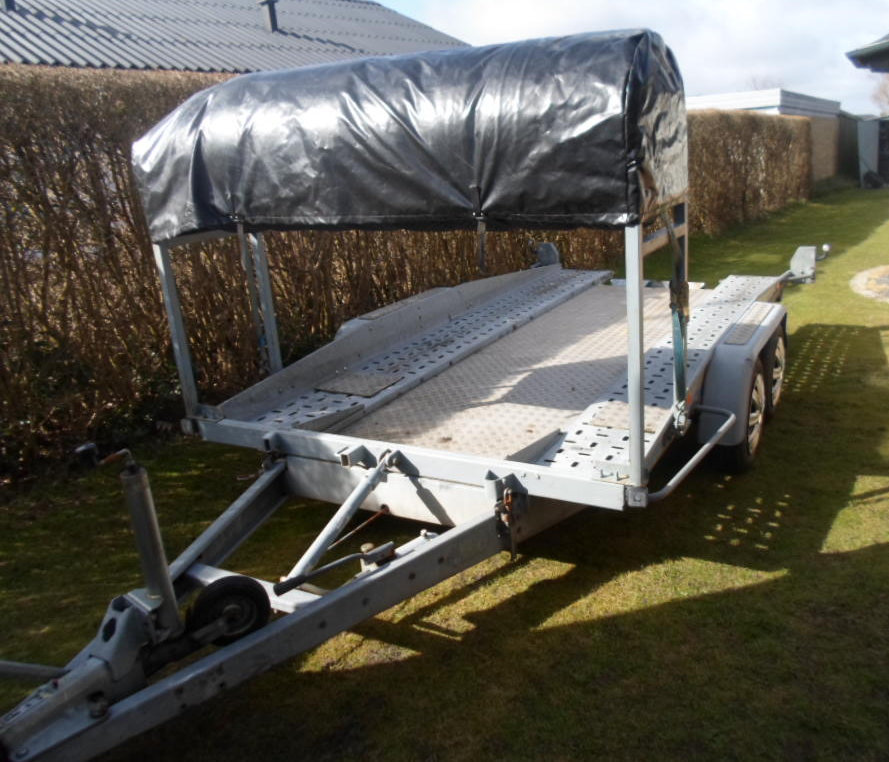 2000kg total 1450 kg last med alu bund mellem kørebaner, dækstativ og presenning over dæk. ny påløbsbremse. reservehjul med dæk nye varevognsdæk fra marts 2026 , skal synes ved salg.